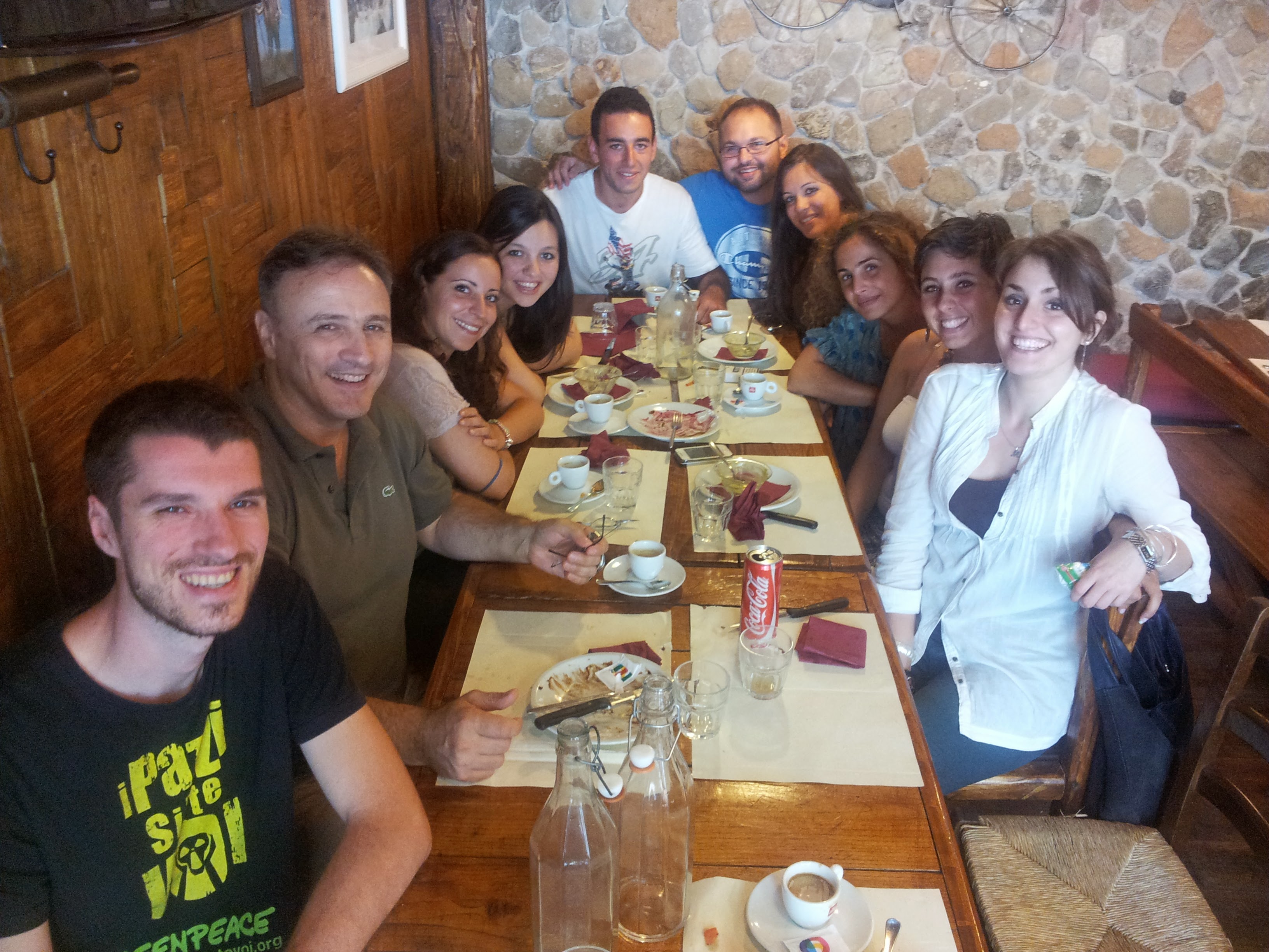 In this image from left to the right: Lidia, Roberta, Giulia, Rino, Eleonora and Filippo