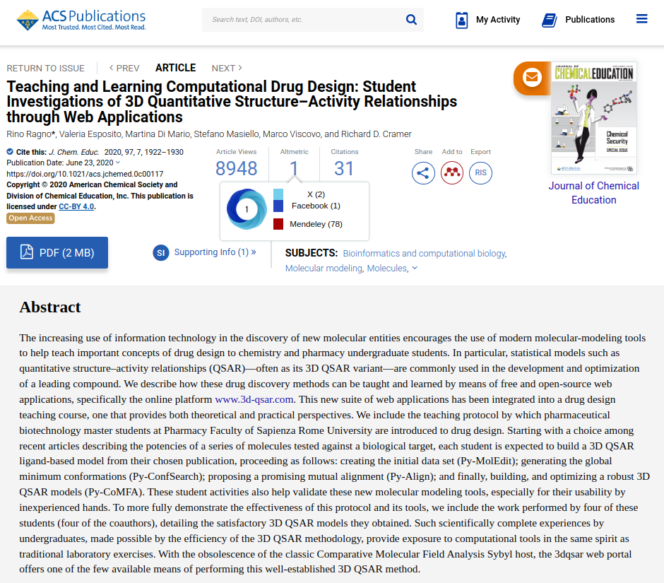 Development of scientific web sites. 3d-qsar.com is a web site that allow tobuild ligand-based and structure-based models from as low data as SMILES and biological activities